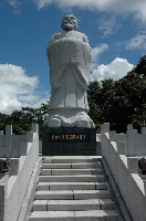 「徐福求仙登蓬莱之像」この像はマグロの漁獲量が多く,遠洋漁業の基地港としても有名な鹿児島県いちき串木野市に,(串木野市)市政50周年を記念して2000年11月に徐福展望公園(冠嶽展望公園)に建立されました。中国の秦皇島市には徐福の帰りを待ち望む始皇帝の像があり,これと向きあうようにして建てられています。